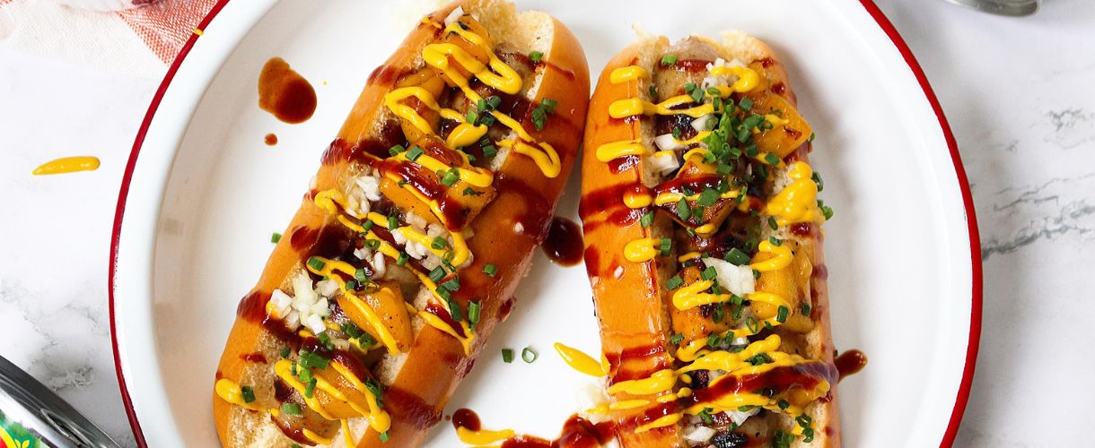 Hot Dogs with Grilled Mango, BBQ Sauce, Lime [...]