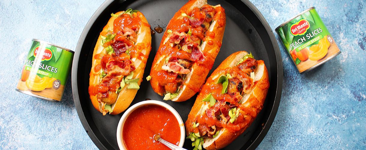 Hot Dogs with Crispy Bacon, Spicy Peach BBQ [...]