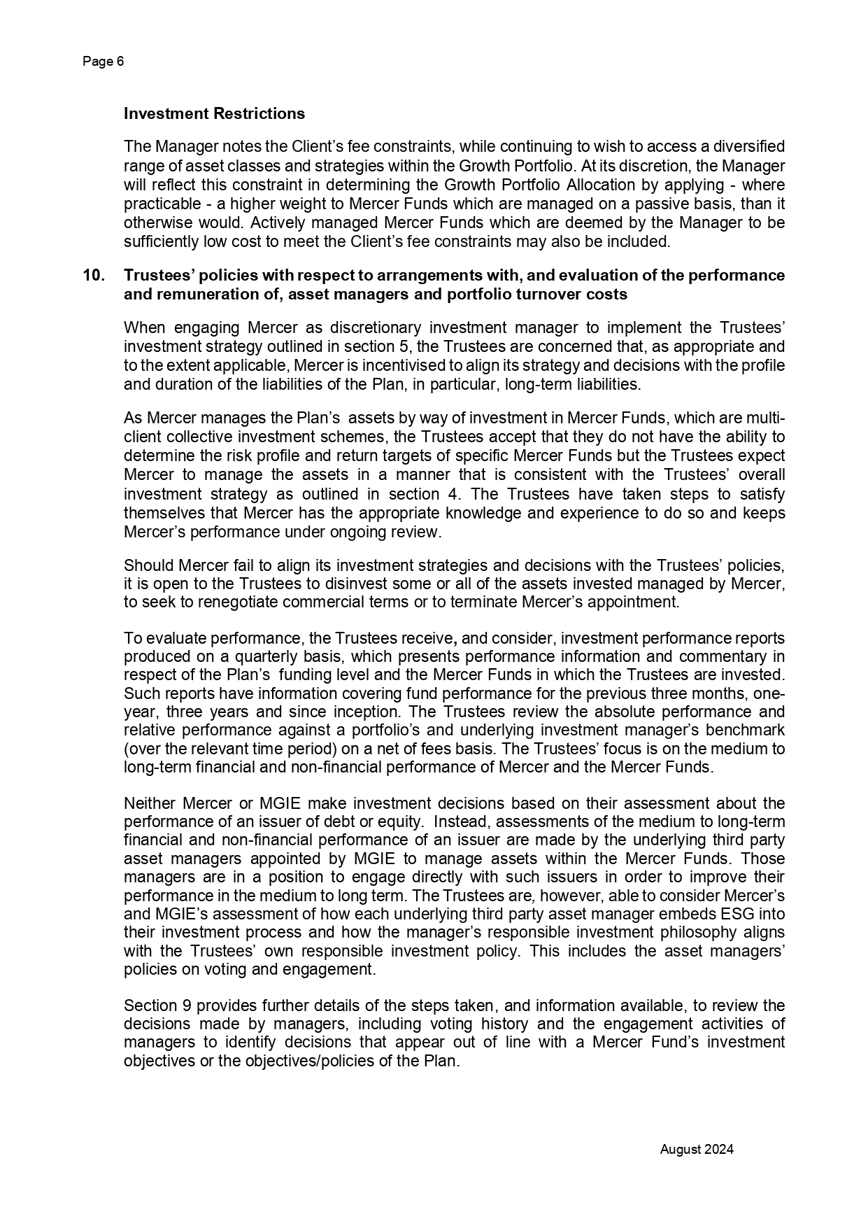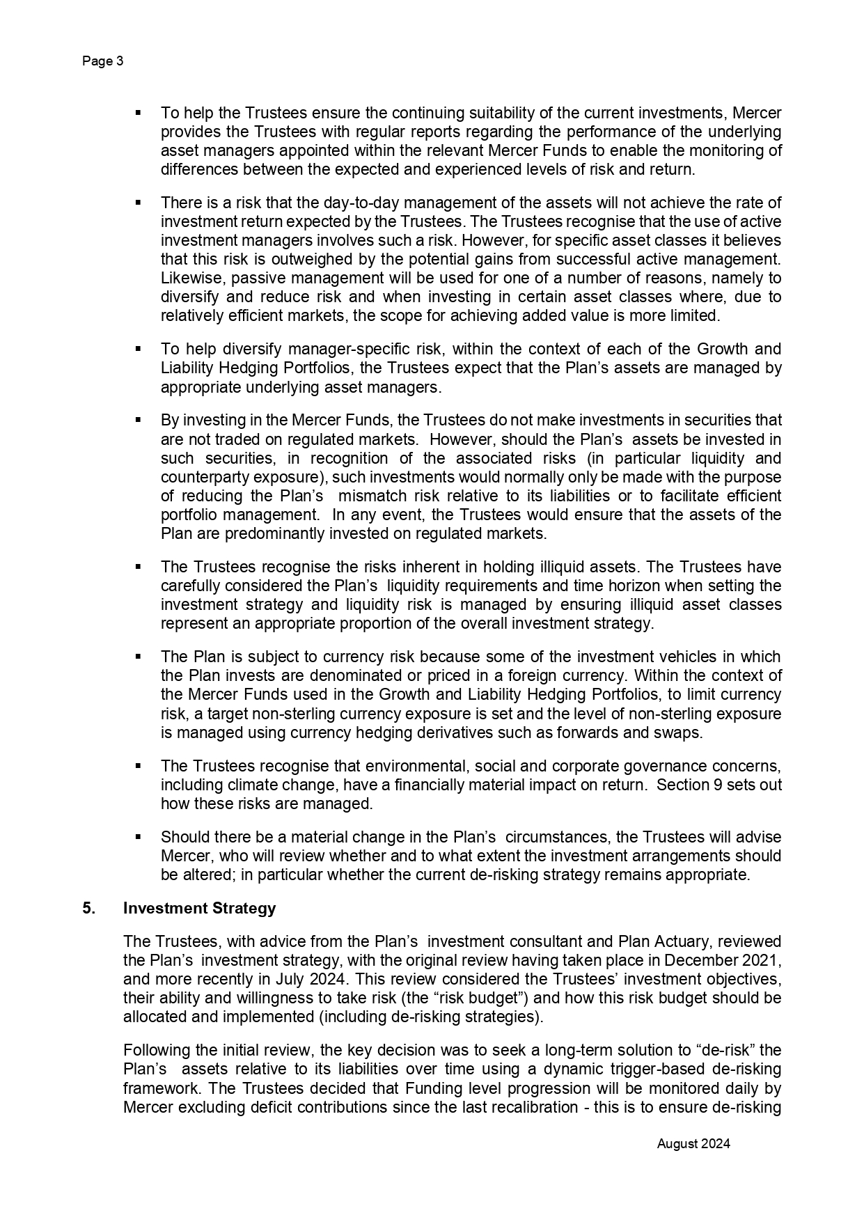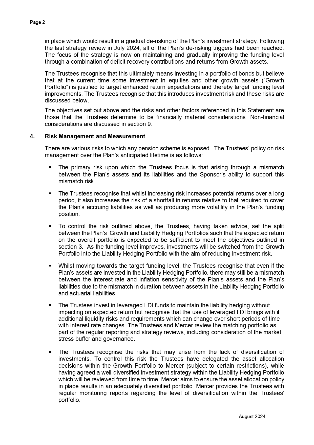 DMFI UK Pension Plan – Statement of Investment Principles